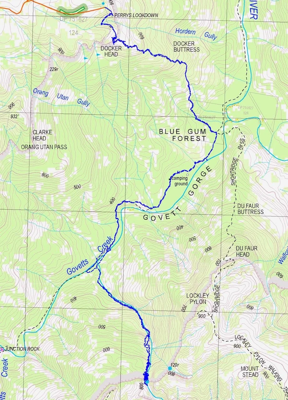 | 07:15 | Leave Perrys Lookdown, descend Docker Buttress | 935 m |