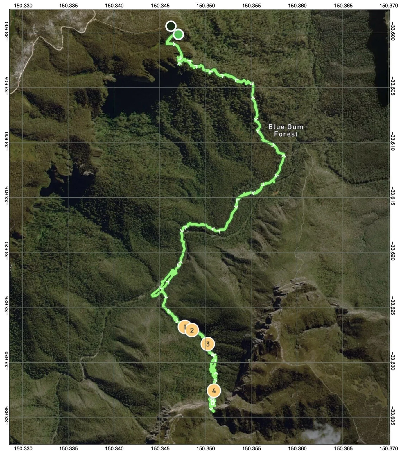 | 07:55 | Reach base of stairs at Blue Gum Forest | 320 m |