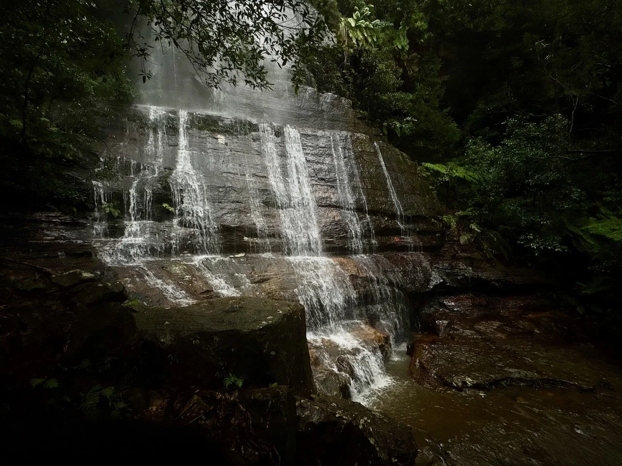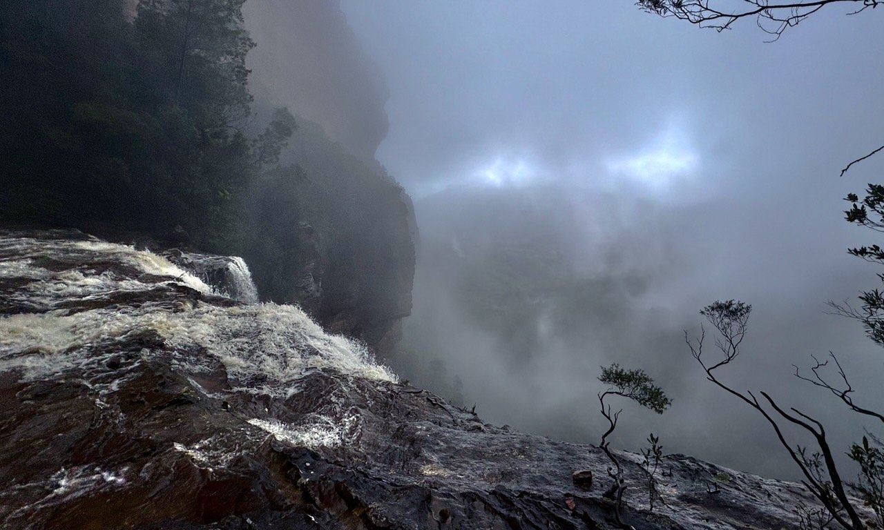 We visit on a wet winter day following a very wet week, and the waterfalls of the Blue Mountains are flowing strongly. Conditions like these transform the landscape, turning creeks into torrents and the falls into something far more powerful than usual.